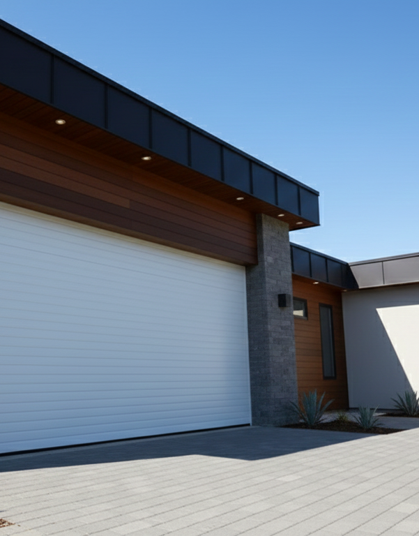 La porte de garage enroulable fonctionne comme un volet roulant : ses lames s’enroulent directement dans un coffre aluminium, permettant un encombrement minimal et une grande liberté d’aménagement.