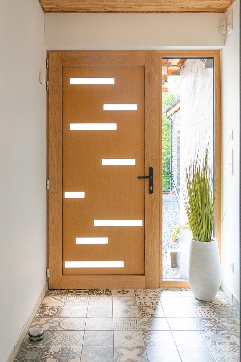 Alliez élégance du bois et modernité de l’aluminium pour votre entrée.